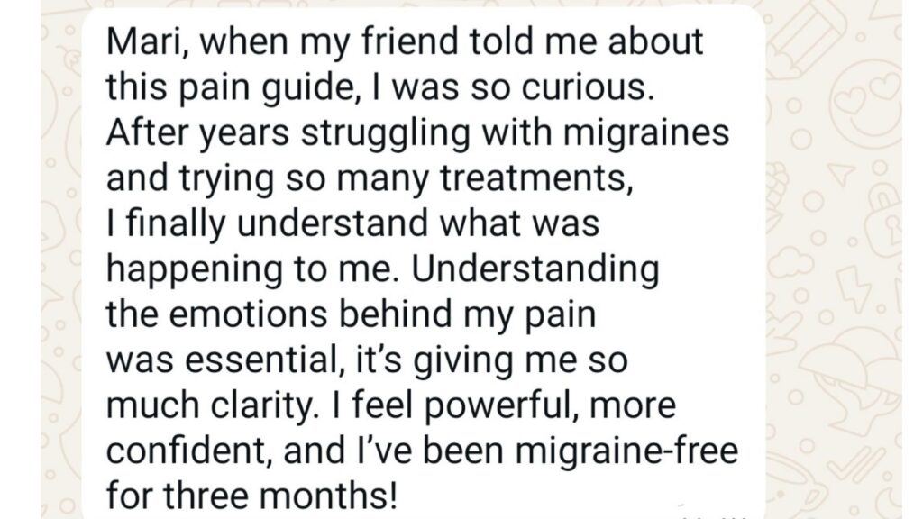 Legal Notice: The company Mari Mansur Psicologia LTDA and the product Pain Guide have no institutional affiliation with Facebook, Instagram, WhatsApp, Google, Meta Inc., or any other social media platforms. All content provided through our websites, programs, videos, or materials is intended for educational and informational purposes only, supporting the emotional and cognitive understanding of chronic pain. While our tools are developed based on neuroscience and clinical psychology, no results can be guaranteed, as each individual’s experience is shaped by unique biological, psychological, and social factors. Nothing presented constitutes a promise of cure or a substitute for medical, physiotherapeutic or psychological treatment.